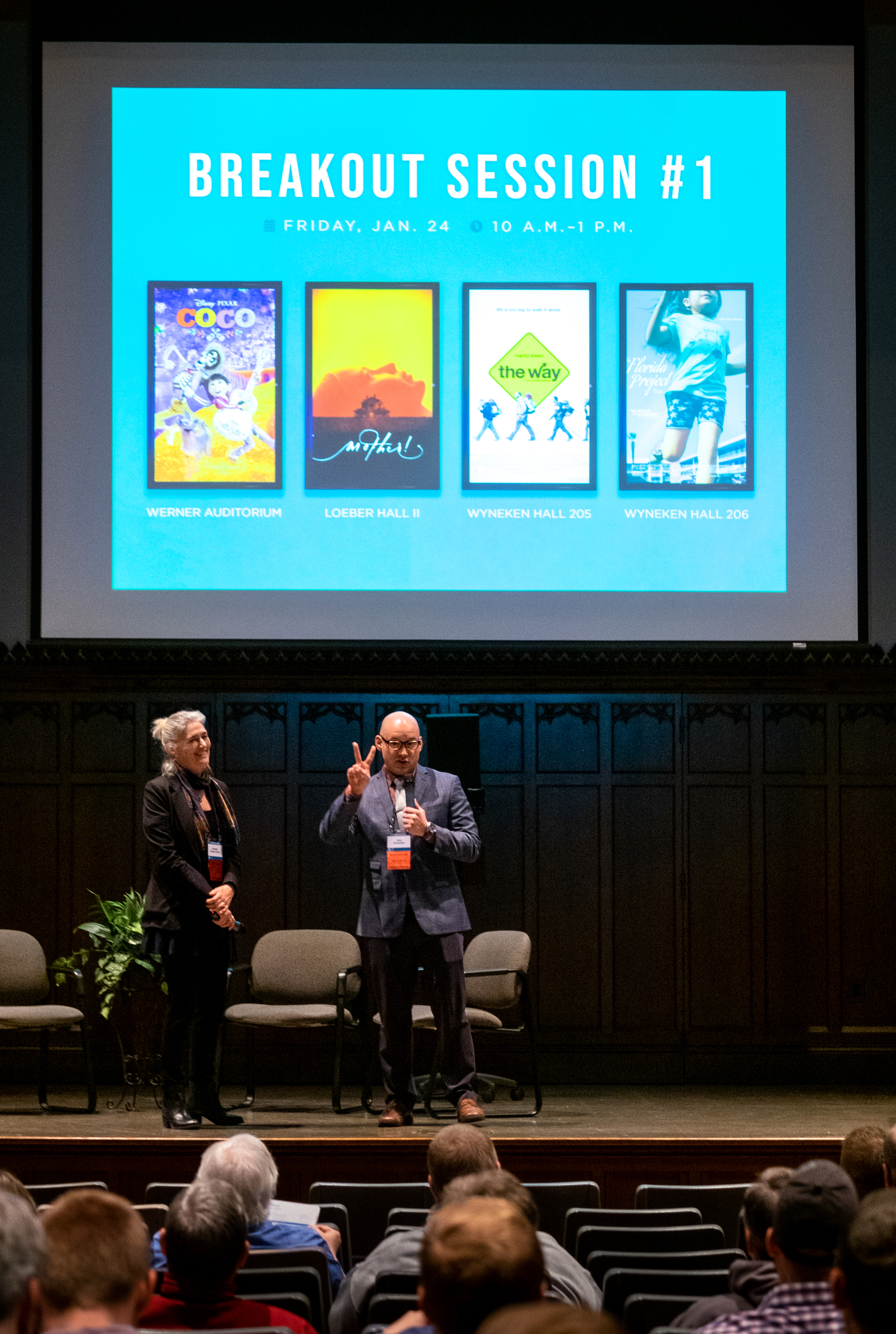 Jake gives us a taste of the morning Break-OUt Session Films. Faith and Film Festival on the campus in Clayton, Mo., Jan. 23-15, 2020. The festival opened Thursday, Jan. 23, in Werner Auditorium with an opening reception, welcome by Erika Bennett and screening of the film “The Rider” followed by a discussion with the Rev. Jacob Wampfler and author Heather Choate Davis.Photo by Sid Hastings.